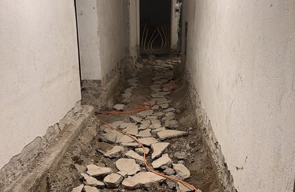 I lavori procedono a pieno ritmo! La cantina viene gradualmente ammodernata. Vi aspetta qualcosa di speciale: una cantina per sci e biciclette.